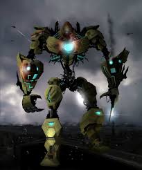 pieces, wooden pallets, and wheels resemble a robot. I saw a pile of junk; he
